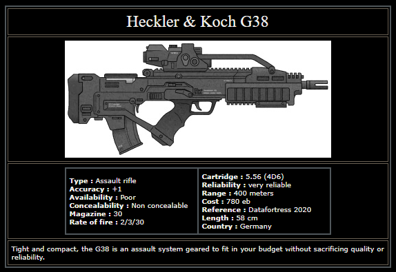 Developed by Lucas Barellio, this futuristic rifile was lost to time after the demise of Rebirth. This weapon uses electricity through batteries to condense energy into a bolt and propel it towards the target. Since it is a bolt of energy, this weapon is great at penetrating objects/armor. (so half SP, but normal damage through) [STATS] DMG: 5D6 CAP: 10 Shots ROF: 2 CAL: Electricity