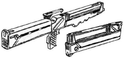| The MN-40, a commando version of the MN-23, has essentially the same features except for its more compact design and a charger reminiscent of the C-X. The stock can easily be removed (accuracy : 0) to hide it under a coat. |