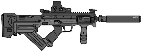| A very sleek, highly maneuverable assault rifle with a removable stock for close quarters work. | ||