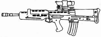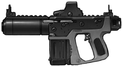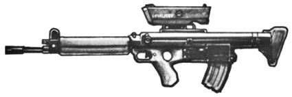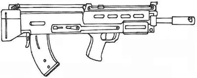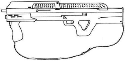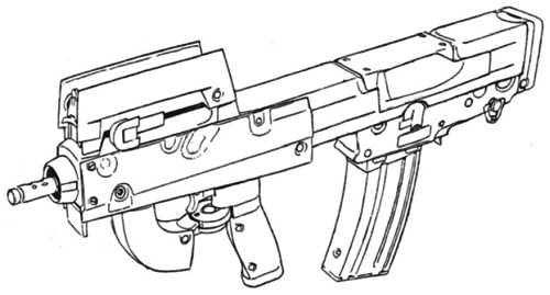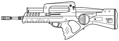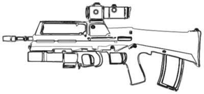 | Popular with special forces and vehicle crews alike, this assault rifle featured a single shot 25 mm GL. It's rail system allows for a variety of scopes, laser sights, bayonets or other attachments, and the weapons bullpup configuration make it ideal for close quarters. |