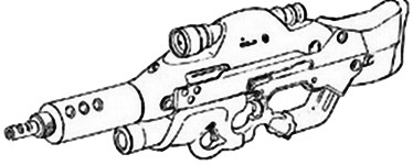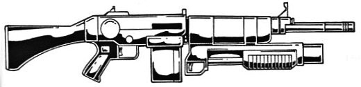 | Although this assault rifle is a shameless copy of Seburo's design, it is an honourable one. It is equipped with a 40 mm grenade launcher (accuracy : 0, magazine : 1). |