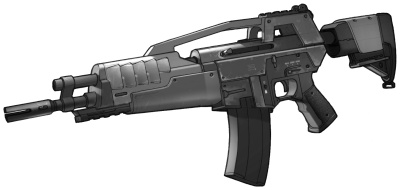 | A standard assault rifle with a nicely adjustable stock. Strictly no frills, but seen everywhere. |