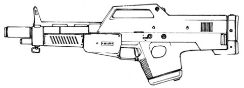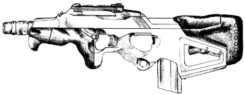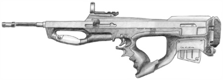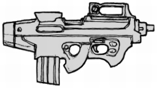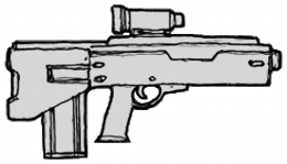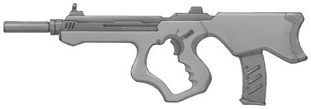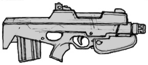 | An odd bullpup design, this is a fairly accurate certainly cost effective assault rifle. Unfortunately it is a high maintenance weapon, not recommended for anything other than urban environments. Because of this the weapon has yet to make a single contract with any military or government. Its ammo magazine serves as a shoulder stock as well. |