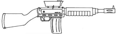 | A very short automatic rifle which fires old 5.56 Armalite Ammunition. It's reliable, accurate and can be concealed under a long coat. Only its price is a bit higher than what can be expected for this type of weapon. Still almost unknown in USA, this weapon may have a good success there in the future. |