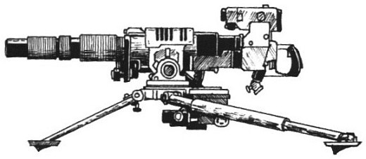 | Damn thats a big gun, 30 mm belt fed, the BART-4 is the bane of armor. Must be either mounted on a vehicle, or on a reinforced tripod to be fired. |