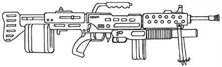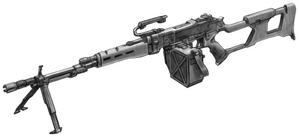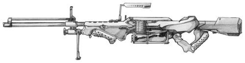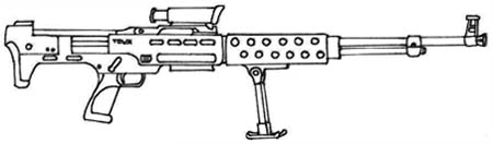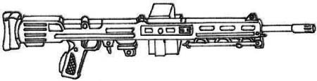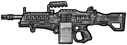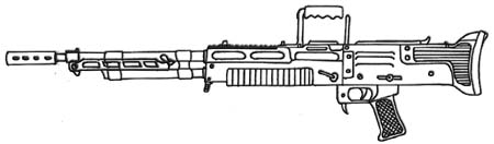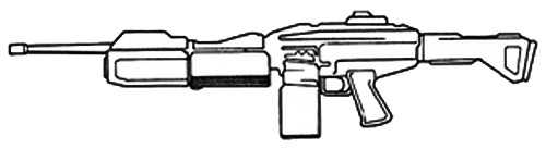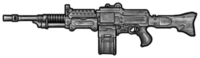 | A standard machinegun, able to accept 100 round drums or belted ammo. A high rate of fire and above average accuracy makes this one of Rostovic's top military products. |