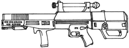 | Bipod, smartlink and mini-grenade launcher (0 4 2 25 mm 100m) on the standard model. |