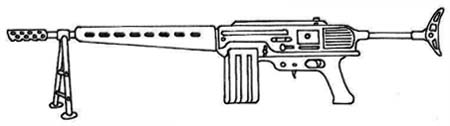 | A machine gun variant of the AK-19 with a heavier barrel and bipod, it has served successfully in many countries as a support weapon. |