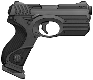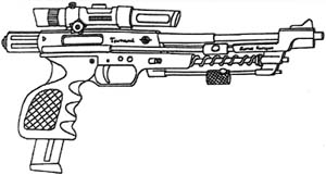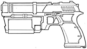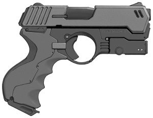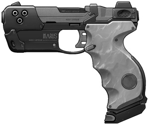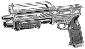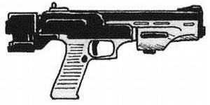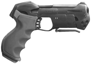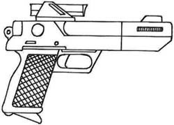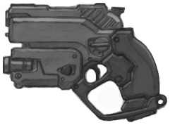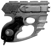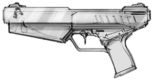 | The Oshi is yet another gun made for security in orbital installations but has also found popularity as a light handgun for women and children. Its state of the art ceramic polymer construction keeps its recoil low. While this handgun is an excellent choice for its role, it is quite susceptible to jamming when not kept properly cleaned. | ||