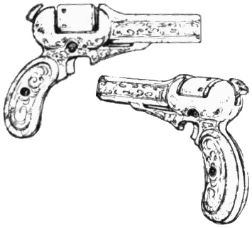 | Always designing their weapons for the upper class, Luigi Franchi does it again with The Gentleman's Duo. A pair of ornate matched dueling revolvers, with a very finely crafted plush case and cleaning kit to complete the set. The weapons are plated in gold, silver or platinum and the engravings on each set is different, and for an additional 300 eb will be customized to the owner. Even the cleaning tools are engraved and the entire set is perfect for display. The weapons are single action and work beautifully, just so they know your serious. Among the upper crust dueling has come back into vogue, and these are some of the premiere pieces available. Though most prefer the more traditional single shot flintlocks. |