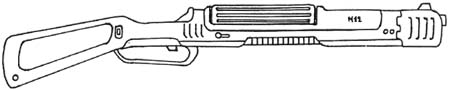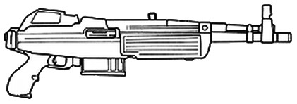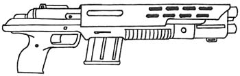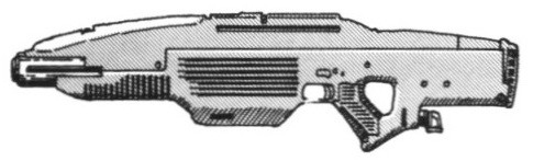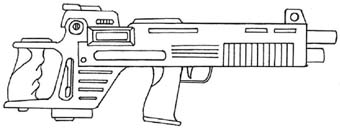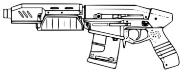 | Spread-patterned laser sight included, adding +1 accuracy when active. Smartgun version available for 1300 eb. |