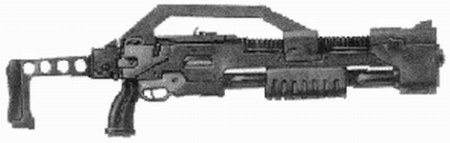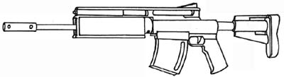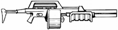 | A new model in the aging CAWS line of weapons, this is a 5.56mm assault rifle with underbarrel pump action grenade launcher. |