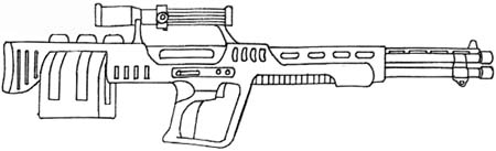 | This riot gun fires bursts of three .477 cal rounds who can reduce any opponent. |