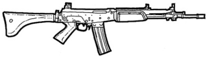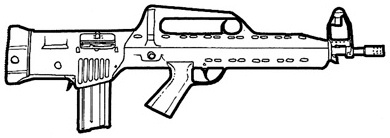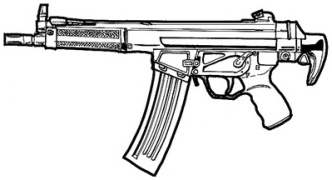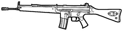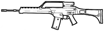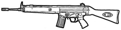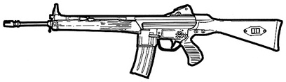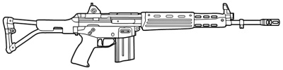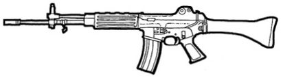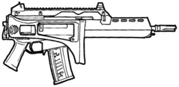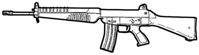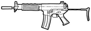 | The SIG 552 is the standard assault weapon of NATO special forces. It uses standard 5.56 mm rounds, and features a shorter length than most full size assault rifles. The SIG 552 also features a selector switch that allows you to choose between single shot, three round bursts and full-auto. This is a common weapon the world over and can be found in most major countries. |