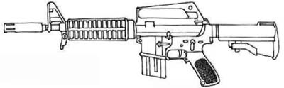 | Essentially a compact M16, the M4 is large enough to fit an M203 grenade launcher. The accessory rail system also permit the use of scopes, illuminators, bipods and other such things on the weapon. |