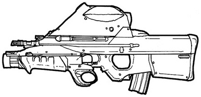 "Bullpup" configuration, with the magazine behind the grip like the Enfield IW rifle or the FAMAS, has been preferred since the seventies for weapons that have needed to be compact, for use by parachutists or for urban and jungle combat.