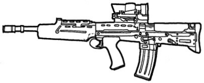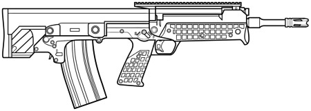 | Essentially a M16A2 modernized with, for example, the add of a laser targeting and a handle under the barrel. |