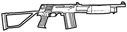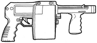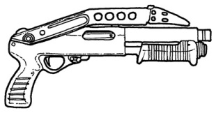 | A unique shotgun design that was years ahead of its time. Developed in the late 80's the Mark 3-A2 has a ten round ammo cassette which acts as both magazine and firing chamber. It accepts any standard 12 ga. load and when fully or partially loaded the ammo cassette can be mated with a special detonator base (an extra 50 eb) and plunger to become a lethal and reusable anti-personnel mine (AP mine damage is the damage of the ammunition used x the number of live rounds in the cassette... use maximum damage if device is stepped on or otherwise point blank). |