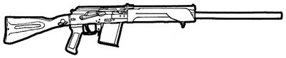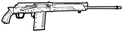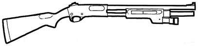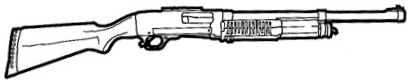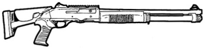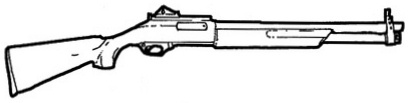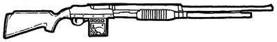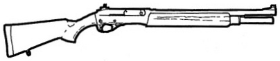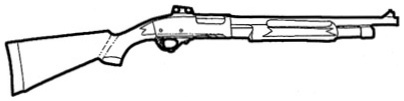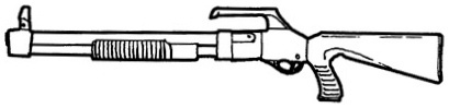 | This is the Remington 11-87 (a development of the 1100) modified for military use, used in those times when a pump-action weapon simply does throw out lead fast enough for your purposes. It differs from the standard 1100 in having rifle-type sights, better chrome inside the barrel, extended magazine, and a recoil pad on the butt that is almost a full inch thick. |