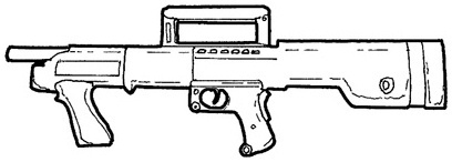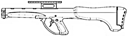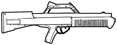 | This weapon is designed for use by Russian KGB and police forces. It is an unusual weapon, with the tubular magazine above the barrel, and the slide action being raked forward to eject a spent round and back to chamber a new round. When the slide is moved, the entire barrel moves as well. The weapon loads from the top and ejects from the bottom. This weapon has also been sold on the civilian market. |