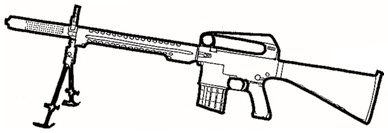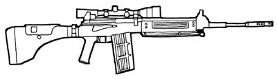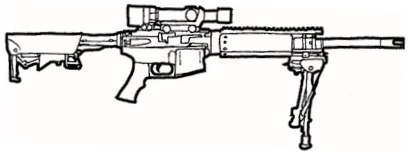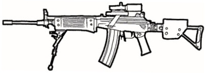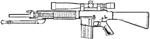 | The Marksman is simply an accurized Galil ARM. Featuring a specialized barrel, an adjustable bipod and a special scope mount that may feature any sort of scope, be it infrared, night vision or anything else. The automatic setting remains on this rifle for emergency use, it is obviously not accurate. |