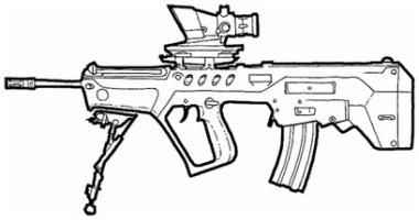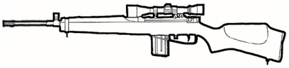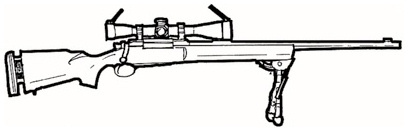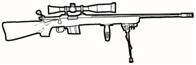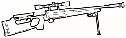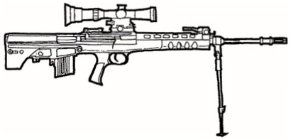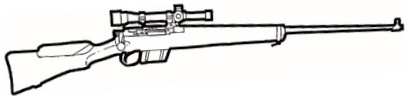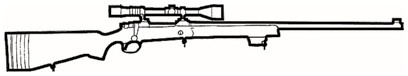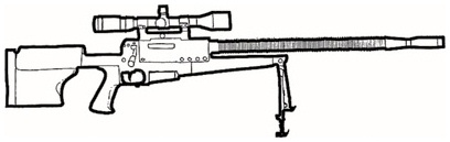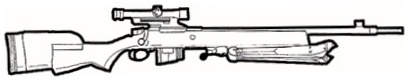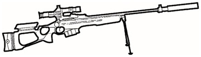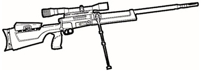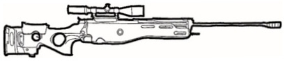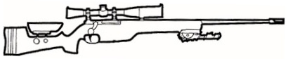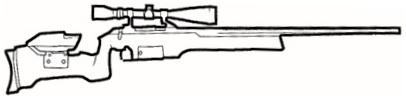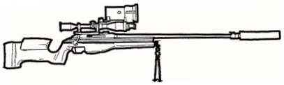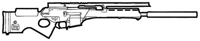 | Sniper rifle with very short range, used by police forces in silent operations. Silence obtained by a very short caliber and by the integrated silencer. |