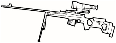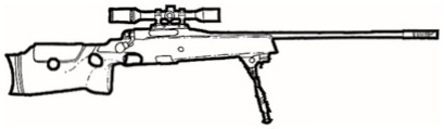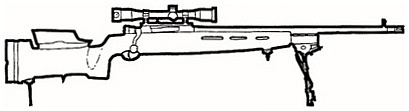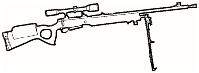 | This weapon is based on the Type 95 assault rifle action, modified with a heaviey accurized barrel, standard scope, fold-up iron sights, and a bipod. This bipod attatches directly to the barrel, however and may affect precision shooting. |