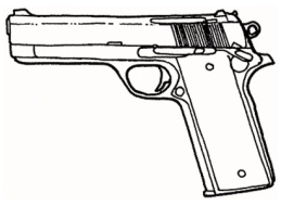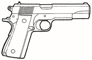 | US Army issue pistol in the 20's, the Colt .45 is known for having good stopping power and by its blunt look. |