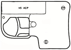 | Just over three-inches long, easily fits into pockets undetected. The gun can be carried fully loaded with the internal hammer always down until moment of firing. Loaded through breech, and shell casing has to be removed manually. |