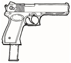 | A fairly common weapon adopted by many European polices and some armed forces between the fifties and the eighties. It is still an easy pistol to get. |
