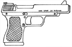 | Billed as the quietest handgun ever made, the whisper certainly lives up to its reputation. It is possibly the perfect handgun for close quarters assassination. The revolver is fully enclosed and features a built in silencer. Hammerless and sporting a built in laser sight along with a digital display on the rear of the gun which counts the number of rounds fired. This gun is so silent that even with audio enhancement you cannot hear it from more than twenty feet away, without audio boost you would have to be standing next to it in a silent room to hear it. It fires cased .22 caliber subsonic rounds which must be individually loaded. |
