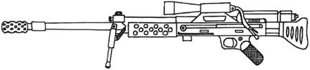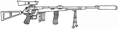 | The SM3 is a must for those jobs when the first shot has to count. Silencer and a variable-mag imaging scope (1.5 to 6 times) with thermographic or low-light (buyers choice) are factory-standard. Like most of its breed, it disasembles completely for fit in a standard briefcase. Ideal for the assassin on the go. |