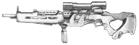 | The PST-99 has a critically angled clip design used for caseless munition feeding. A master-piece among weapons, the PST is favored even within competing corporation's special forces. Comes with detacheable nightvision sight and adjusteable stock and cheekrest. |