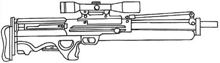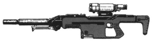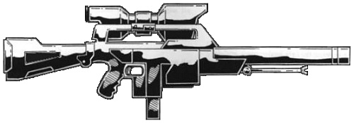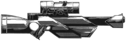 | Silent sniper rifle based on an under calibrated BR-55 assault rifle, the LS-35 is almost more useful for rabbit-hunt than assassinations. It' a shame because except this defect the LS-35 was well designed. Note that it is equiped with an integrated laser sight. |