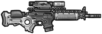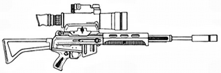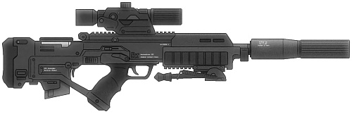 | This sniper rifle, a commission from US Army, is derivated from the M22 assault rifle. It is equiped with an integrated laser aiming device and silencer, a tactical flashlight and a scope. |